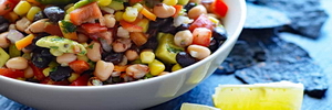 Ajoutez les tomates, les haricots noirs et rouges, le maïs, l'oignon rouge et les poivrons. Remuez le tout.