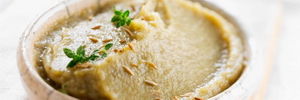 Faire griller les aubergines. Une fois cuites, enlever la peau carbonisée pour ne garder que la chair blanche. Hacher finement l'ail. Saler et poivrer le tout, mélanger avec les aubergines. Incorporer la crème fraîche et l'huile d'olive et donner 2 ou 3 coups de mixeur. Servir très frais dans un ramequin agrémenté de 2 feuilles de basilic et du pain grillé.