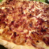 Recouvrir d'oignons, de lardons et de crÚme assaisonnée.