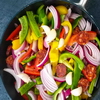 Laver les poivrons, ôter leur pédoncule, les épépiner et les couper en lamelles.