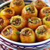Epluchez, lavez, séchez les pommes de terre et creusez-les avec un vide pommes. Coupez une rondelle à la base pour la stabilité de la pomme de terre.