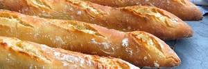 A l'issue du temps de repos, humidifier délicatement les baguettes d'eau à l'aide d'un pinceau alimentaire, les grigner sur leur longueur et les cuire au four 10 mn à 240° (th. 8) puis 10 mn à 200° (th. 6-7).