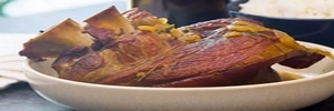 Lorsque le jarret de porc est bien cuit et bien doré, sortez-le du four et servez-le immédiatement.